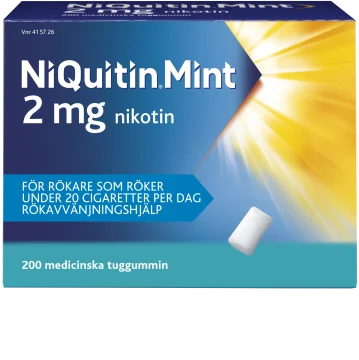 NiQuitin Mint 2 mg är lämpligt för personer som röker under 20 cigaretter per dag. Steg 1: Inledning av behandlingen: Ta ett tuggummi när du känner röksuget. Använd 8–12 st/dag i upp till 3 månader Steg 2: Nedtrappning: Minska stegvis tills du tar 1–2 tuggummin per dag. Sluta då helt Steg 3: Stöttande behandling: Ta ett tuggummi om du blir röksugen. Stoppa tuggummit i munnen och tugga långsamt tills smaken blir stark (cirka 1 minut), sluta sedan tugga och låt tuggummit vila mot kinden. När smaken avtar, tugga några gånger tills smaken blir stark, låt sedan tuggummit vila igen. Efter cirka 30 minuter är tuggummit slut. Du ska inte äta eller dricka något med tuggummit i munnen. Det kan minska nikotinupptaget. Använd inte mer än 15 tuggummin per dag.