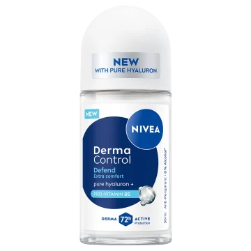 Nivea Deo Derma Control Defend Roll On är en skonsam antiperspirant som erbjuder upp till 72 timmars skydd mot svett och lukt. Berikad med hyaluronsyra och Pro-Vitamin B5 som skyddar mot irritation efter rakning samtidigt som den vårdar huden i armhålorna. 50 ml.