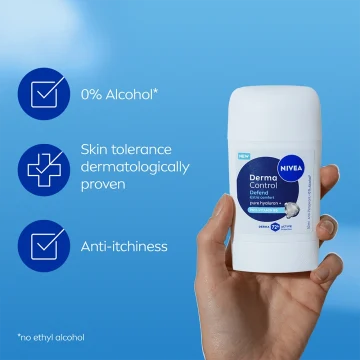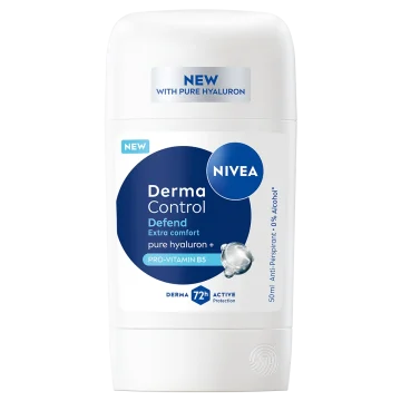 Nivea Deo Stick Derma Control Defend är en skonsam antiperspirant som har upp till 72 timmars skydd mot svett och lukt. Berikad med hyaluronsyra och pro-vitamin B5 som vårdar huden, skyddar mot irritation efter rakning och minskar friktion från kläder. Den motverkar även klåda och ger komfort till dina armhålor. 50 ml.