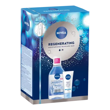 Nivea Giftpack Regenerating är en presentbox med härliga hudvårdsprodukter. I denna presentbox hittar du Nivea Micellar Water Regenerating, ett milt och effektivt micellärvatten som tar bort smink och orenheter och Nivea Refreshing Day Cream, en mjukgörande ansiktskräm.