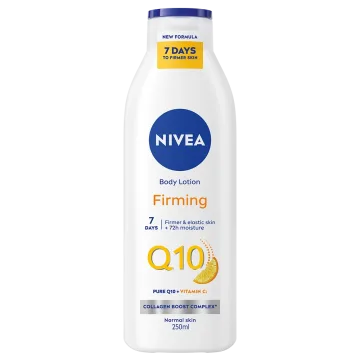 Nivea Q10 Vitamin C Body Lotion är en återfuktande kroppslotion som hjälper till att stärka och förbättra hudens spänst och elasticitet. Berikad med ren Q10 och C-vitamin som stimulerar hudens cellförnyelse och glycerin som återfuktar på djupet. Vårdande formula som återfuktar huden i upp till 48 timmar och ger en mild doft. Dermatologiskt testad och passar normal hud. 250 ml.