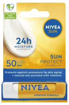 Nivea Sun Protect Lip Balm är ett återfuktande och skyddande läppbalsam med SPF50. Med ett högt solskydd skyddar läppceratet mot UVA- och UVB-strålar och genom sheasmör hålls läpparna återfuktade. Dermatologiskt testad. 4,8 gram.