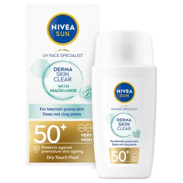 Nivea UV Face Specialist Blemish Control SPF50+ är en återfuktande solkräm för ansiktet med SPF 50+ som ger skydd mot UVA- och UVB-strålar. Berikad med niacinamid vars egenskaper bidrar till att motverka tilltäppta porer och blemmor. Dermatologiskt och oftalmologiskt testad. Flaskan är FSC-godkänd och tillverkad av 50% återvunnet material. Formulan är märkt med Ocean Respect. Passar normal och kombinerad hud. 40 ml.