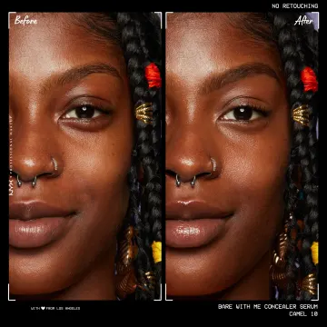 Täck och ge fukt bara genom att applicera en pumpning av Bare With Me Concealer Serum på huden (både ansikte och kropp) och tona ut i huden med en blendingborste. På problemområden (mörka ringar, ojämnheter, rodnad, torra områden) kan du applicera två pumpningar för medium täckning.