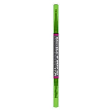 NYX Professional Makeup Blade & Shade är en ögonbrynspenna som ger ett salongsliknande resultat när du fyller i ögonbrynen hemma. Pennan har en unikt utformad spets som både har en ultratunn sida som används för att skapa hårstråliknande streck och forma ögonbrynen till önskad längd och bredd, och en bred sida som används för att skugga ögonbrynen och ge dem ett fylligare intryck. Resultatet håller i upp till 16 timmar utan att blekna eller smetas ut under dagen. Krämiga pigment som glider lätt över huden utan att fastna. Finns i 12 nyanser. 0,1 g.