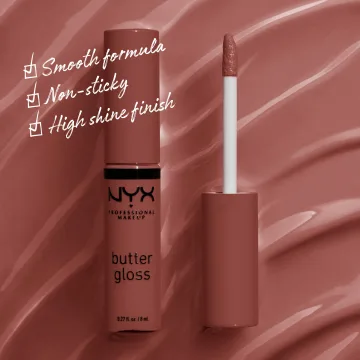 NYX Professional Makeup Butter Gloss är ett mjukt och lent läppglans med en söt doft och smak. Krämig formula som smälter på läpparna, ger en högglansig finish och aldrig känns klibbig. Läppglanset ger en lätt till medium täckning och kan användas enskilt eller över ett läppstift eller en matchande läppenna. Med en snedställd applikator som gör det enkelt att applicera läppglanset. Finns i flera nyanser som går från persikofärgat, nude och rosa till riktigt djupa röda och bruna toner. 8 ml.