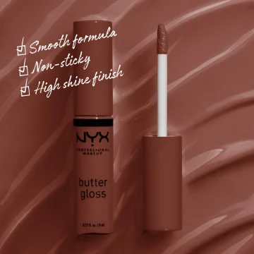 NYX Professional Makeup Butter Gloss är ett mjukt och lent läppglans med en söt doft och smak. Krämig formula som smälter på läpparna, ger en högglansig finish och aldrig känns klibbig. Läppglanset ger en lätt till medium täckning och kan användas enskilt eller över ett läppstift eller en matchande läppenna. Med en snedställd applikator som gör det enkelt att applicera l äppglanset. Finns i flera nyanser som går från persikofärgat, nude och rosa till riktigt djupa röda och bruna toner. 8 ml.