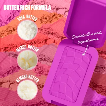 MICA , CI 77891 / TITANIUM DIOXIDE , TALC , SILICA , LAUROYL LYSINE , TRIMETHYLSILOXYPHENYL DIMETHICONE , ETHYLHEXYL PALMITATE , ZINC STEARATE , CI 15850 / RED 7 LAKE , CI 45410 / RED 28 LAKE , OCTYLDODECANOL , MANGIFERA INDICA SEED BUTTER / MANGO SEED BUTTER , HELIANTHUS ANNUUS SEED OIL / SUNFLOWER SEED OIL , PRUNUS AMYGDALUS DULCIS OIL / SWEET ALMOND OIL , BUTYROSPERMUM PARKII BUTTER / SHEA BUTTER , AROMA / FLAVOR , CAPRYLYL GLYCOL , ISOSTEARYL ISOSTEARATE , OCTYLDODECYL STEAROYL STEARATE , TOCOPHEROL , PHENOXYETHANOL , LINALOOL , LIMONENE