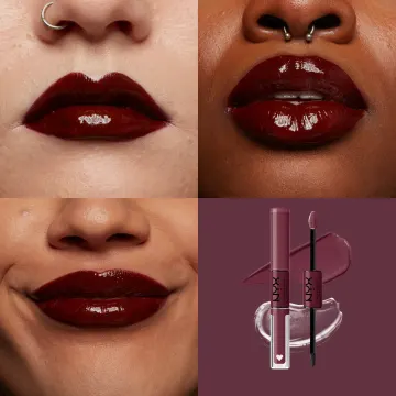 NYX Professional Makeup Shine Loud High Pigment Lip Shine är ett ultrapigmenterat läppglans som ger ett långvarigt resultat. Läppglanset håller i upp till 16 timmar utan att smeta ut och har en lätt och behaglig känsla på läpparna. Formulan tillför färg i ett enda drag och ger en glasliknande finish som inte känns klibbig. Detta lip shine har en tvåstegs-teknologi med en högpigmenterad basecoat och en superreflekterande, icke-klibbig topcoat. Läppglanset är dubbelsidigt med separata applikatorer för bas- och topplack. Berikad med olja från makadamiafrö, korianderfrukt, jojobafrö, aprikoskärna och passionsfrukt. Vegansk. 3,4 ml.