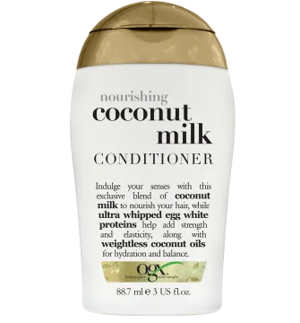 OGX Nourishing Coconut Milk Conditioner är ett näringsgivande, mjukgörande balsam med kokosolja. Gör håret fantastiskt lent och glänsande med en härlig doft av kokos. Passar normalt till torrt hår, även färgat hår. Parfymerat. 88,7 ml.