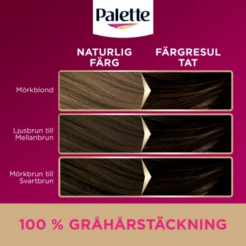 Palette Intensive Creme Coloration är en permanent hårfärg som även täcker gråa hårstrån. Den oljeberikade formulan med högkoncentrerade pigment tränger in i håret för 100% gråhårstäckning samt långvarig lyster fram till nästa färgning. En specialutvecklad fuktbevarande behandling återfuktar håret på djupet och ger en mjuk och len känsla. Silikonfri.