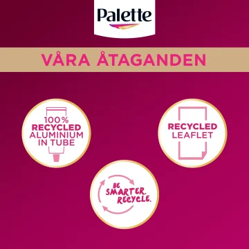 Palette Intensive Creme Coloration är en permanent hårfärg som även täcker gråa hårstrån. Den oljeberikade formulan med högkoncentrerade pigment tränger in i håret för 100% gråhårstäckning samt långvarig lyster fram till nästa färgning. En specialutvecklad fuktbevarande behandling återfuktar håret på djupet och ger en mjuk och len känsla. Silikonfri.