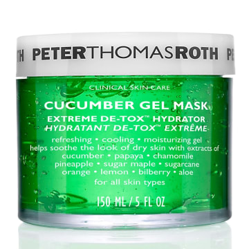 Peter Thomas Roth Cucumber Gel Mask är en fuktgivande och återupplivande ansiktsmask med lugnande egenskaper. Den hjälper till att tona ut hudens textur, minimera förstorade porer och tillföra ökad lyster. Innehåller antioxidanter och växtextrakt för en kylande effekt. Aloe vera, kamomill och gurkextrakt har en lugnande och återfuktande effekt på huden medan apelsin, citron och blåbärsextrakt verkar porsammandragande och tillför antioxidanter. Sockerrör och lönnextrakt verkar lätt exfolierande och har även en mattande effekt. Papaya och ananasextrakt är rika på vitaminer, verkar mjukgörande och tillför ökad lyster. Gelmasken är perfekt att använda efter solexponering, peeling, rakning eller vaxning. Efter användning känns huden uppfriskad och fräsch. För en ökad avsvällande och lugnande effekt kan masken förvaras i kylskåp. Oljefri. Passar alla hudtyper, även känslig hud. 150 ml.