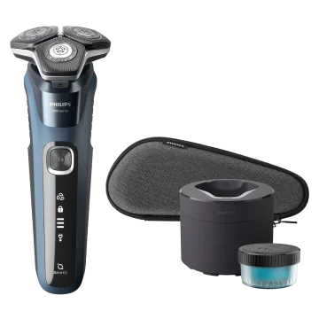 Philips 5000 Series Shaver Quick Clean Pod är en rakapparat som ger en effektiv rakning och är lätt att rengöra. Utrustad med Philips SkinIQ-teknik som känner av hårdensiteten och anpassar kraften för att ge en så effektiv och bekväm rakning som möjligt. De flexibla huvudena följer ansiktets konturer som för att bibehålla kontakten med huden och ge ett så jämnt resultat som möjligt. I handtaget finns en integrerad precisionstrimmer för att skapa skarpa kanter eller trimma mustasch och polisonger. En sladdlös rengöringsstation som rengör rakapparaten noggrant och effektivt på 1 minut medföljer. Rakapparaten kan fulladdas i 1 timme eller snabbladdas i 5 minuter, en fulladdning ger upp till 60 minuters användning. Vattentät modell som även kan användas i duschen.