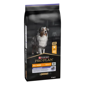 PURINA PRO PLAN All Sizes Adult Performance Torrfoder Hund är ett komplett torrfoder speciellt anpassar för hundar med höga nivåer av fysisk aktivitet. Fodret har skräddarsytts för att bidra till att främja uthållighet, snabb muskelåterhämtning och friska leder. Innehåller bland annat aminosyror och omega 3-fettsyror. Fodret är rikt på högkvalitativ kyckling. Passar hundar med mycket aktiva livsstilar. 14kg.