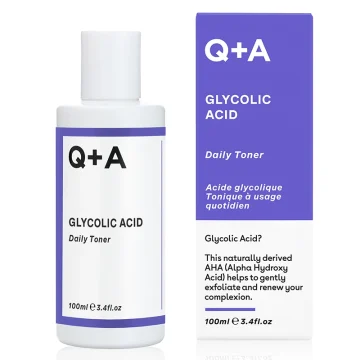 Q+A Glycolic Acid Daily Toner är ett exfolierande ansiktsvatten med lystergivande egenskaper. Tonern innehåller glykolsyra som är en naturlig AHA-syra som skonsamt exfolierar det översta hudlagret. Glykolsyra hjälper till att reducera hyperpigmentering och ålderstecken. Innehåller även hyaluronsyra och aloe vera. Vegansk. Alkoholfri. Oparfymerad. 100 ml.