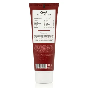 Q+A Hyaluronic Acid Gel Cleanser är en mild ansiktsrengöring som tar bort orenheter och make-up. Efter användning känns huden rengjord och återfuktad. Innehåller aloe vera och hyaluronsyra som är fuktbindande och näringsgivande. Parfymfri. Vegansk. 125 ml.