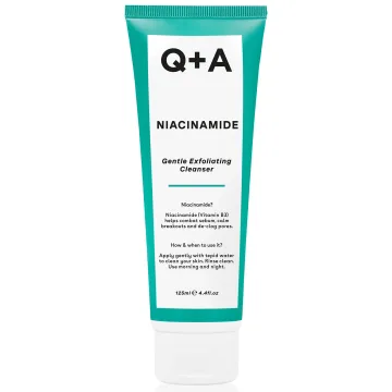 Q+A Niacinamide Gel Cleanser är en mild ansiktsrengöring som rengör huden och ger en skonsam exfoliering med jojobaestrar. Berikad med niacinamid som hjälper till att motverka orenheter och bidrar till en jämnare hudton, samt inulin och fruktos som skyddar huden mot yttre påfrestningar. Innehåller även glycerin och aloe vera som återfuktar huden och ger en lugnande känsla. Passar alla hudtyper. Oparfymerad. 125 ml.