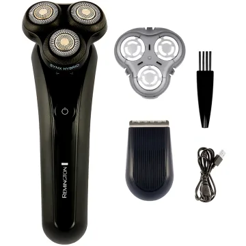 Remington XR1755 X5 Limitless X Rotary Shaver är en rakapparat med innovativt rakningssystem. Innovativ hybridteknologi som kombinerar foilskär med roterande blad för en närmare, skonsammare och effektivare rakupplevelse. Rakapparaten är designad med ett 360° rörligt huvud som rör sig i valfri riktning och följer ansiktets konturer för att fånga varje skäggstrå och ge maximal hudkontakt. Smart teknologi med PowerSense som svarar på tryck mot huden och analyserar tjockleken på stråna 800 gånger/sekund för att bibehålla rätt hastighet och ge optimal prestanda. Rakapparaten är vattentät för både våtrakning och torrakning och rakhuvudet kan öppnas för att rengöras efter rakning. Detaljtrimmerhuvud medföljer för att trimma polisonger och skapa definierade linjer. Rakapparaten har en sladdlös användningstid på 50 min som motsvarar ca 16 rakningar. 90 minuter uppladdningstid samt en snabbladdningsfunktion på 5 minuter som ger tid för en rakning på 3 minuter. Designad med LED-indikator som indikerar lågt batteri och blinkar långsamt rött vid laddning och släcks när den är fulladdad.