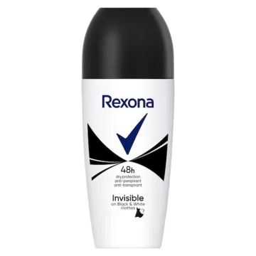 Rexona Womens Roll-On Invisible B&W är en deodorant med antiperspirant. Den minskar risken för fläckar på kläderna. Vissa deodoranter kan ge gula fläckar på vita kläder och vita fläcka på svarta kläder. Med Rexona Invisible Dry Black + White behöver du inte tänka på vilken färg du har på dig. deodoranten skyddar håller dig torr och skyddar mot lukt i upp till 48 timmar. 50 ml.