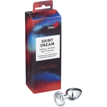 RFSU Shiny Dream Small Metal Butt Plug är en liten analplugg som ger stimulans på känsliga punkter. Analpluggen är gjord av putsad aluminium och har en avsmalnande topp som gör den behaglig att föra in. Sexleksaken kan läggas i varmt eller kallt vatten för att ändra temperatur innan användning. Tillverkad i vattentåligt material som tillåter användning i dusch och bad.