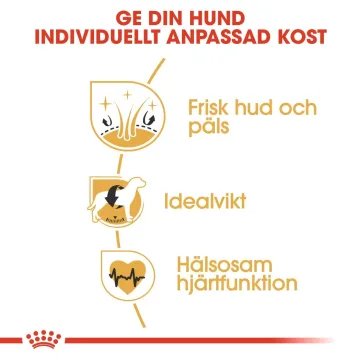 Royal Canin Cocker Adult Dog är ett torrfoder framtaget för cocker spaniel-hundar som är 12 månader och äldre och speciellt utvecklat med alla din vuxna hunds näringsbehov i åtanke. Fodret har en optimal sammansättning, bland annat ett måttligt fettinnehåll, i syfte att möjliggöra ett begränsat dagligt energiintag. Fodret är berikat med boragoolja, A-vitamin och omega 3-fettsyror (EPA och DHA) vilket tillför näringsämnen av vikt för din hunds hud och päls. Fodret hjälper också till att stödja din hunds hjärtfunktion, detta tack vare en specifik kombination av näringsämnen som bidrar till att bibehålla god hjärthälsa. Dessutom är bitarnas form och storlek skräddarsytt exklusivt för rasen cocker spaniel. Produkten innehåller kalciumkelatorer som hjälper till att bromsa bildande och uppbyggnad av tandsten vilket i slutändan också förbättrar hundens munhygien. 12 kg.