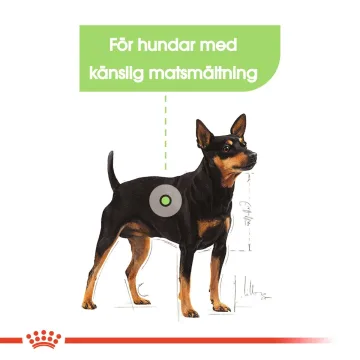 Royal Canin Digestive Care Mini Dog är ett näringsrikt torrfoder speciellt framtaget för hundar med känslig matsmältning. Lämpligt för alla hundar av småvuxna raser som väger upp till 10 kg. Fodret är framtaget med en balanserad mix av lösliga och olösliga fibrer som hjälper till att begränsa fermenteringen och att stödja passagen genom tarmen. Fodret innehåller prebiotika som bidrar till att stödja en hälsosam tarmflora. Den är också berikad med ett mycket lättsmält protein av högsta kvalitet. 3 kg.