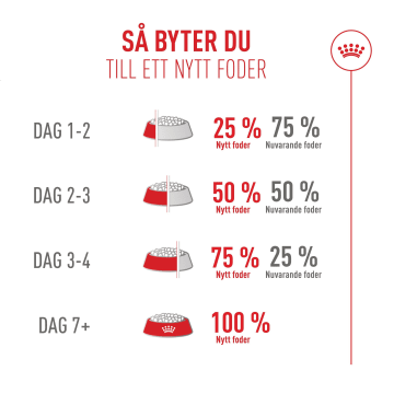 SAMMANSÄTTNING: dehydrerade fjäderfäproteiner, majsmjöl, djurfetter, vetemjöl, vetegluten*, ris, hydrolyserade animaliska proteiner, betmassa, majsgluten, jästprodukter, mineraler, fruktooligosackarider, algolja Schizochytrium sp., mjöl av ringblomma. *L.I.P.: protein utvalt för dess mycket höga smältbarhet. ANALYSERAT INNEHÅLL: Protein: 40,0 % - Växttråd: 1,0 % - Fettinnehåll: 17,5 % - Råaska: 7,0 % - Omsättbar energi: 4175 kcal/kg. TILLSATSER (per kg): Näringstillsatser: Vitamin A: 13300 IE, Vitamin D3: 700 IE, Järn (3b103): 28 mg, Jod (3b201, 3b202): 2,8 mg, Koppar (3b405, 3b406): 9 mg, Mangan (3b502, 3b504): 37 mg, Zink (3b603, 3b605, 3b606): 115 mg, Selen (3b801, 3b811, 3b812): 0,07 mg - Antioxidanter. UTFODRINGSANVISNING: se tabell. Det bör finnas ständig tillgång till vatten. Partinummer, fabrikens registreringsnummer och bäst före datum: se förpackning. Förvaras svalt och torrt.