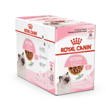 Royal Canin Kitten Gravy är ett våtfoder framtaget för att tillgodose kattunges näringsbehov. Lämpligt för kattungar i åldern 4 till 12 månader, när kattungarna går igenom en period av fysiska och beteendemässiga förändringar. Fodret består av bitar i sås som har en optimal storlek, konsistens och smak för växande kattungar. Det är framtaget för att göra de mest kräsna katter belåtna och stödjer din kattunges vätskeintag. Våtfodret innehåller vitamin C och E som kan bidra till stärkt immunförsvar hos kattungen. Det innehåller även omega 3-fettsyror (DHA) som kan stödja hjärnans utveckling. Prebiotika och lättsmälta proteiner bidrar till att stödja en hälsosam balans i tarmfloran och god matsmältning. 12x85 g.
