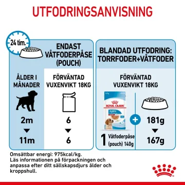 - Våtfoder framtaget för att tillgodose näringsbehovet hos medelstora valpar