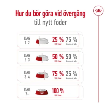 SAMMANSÄTTNING: majs, dehydrerade fjäderfäproteiner, ris, vetemjöl, djurfetter, vetegluten, majsgluten, hydrolyserade animaliska proteiner, vete, korn, betmassa, mineraler, fiskolja, sojaolja, jästprodukter, fruktooligosackarider, algolja Schizochytrium sp. (källa till EPA och DHA), jäst (källa till mannanoligosackarider), mjöl av ringblomma. ANALYSERAT INNEHÅLL: Protein: 26,0 % - Växttråd: 1,5 % - Fettinnehåll: 14,0 % - Råaska: 5,5 % - EPA/DHA: 0,43 % - Omsättbar energi: 3854kcal/kg. TILLSATSER (per kg): Näringstillsatser: Vitamin A: 21900IE, Vitamin D3: 1000IE, Järn (3b103): 37mg, Jod (3b201, 3b202): 3,7mg, Koppar (3b405, 3b406): 11mg, Mangan (3b502, 3b504): 48mg, Zink (3b603, 3b605, 3b606): 136mg, Selen (3b801, 3b811, 3b812): 0,09mg - Konserveringsmedel - Antioxidanter. UTFODRINGSANVISNING: se tabell. Partinummer, fabrikens registreringsnummer och bäst före datum: se förpackning. Förvaras svalt och torrt.