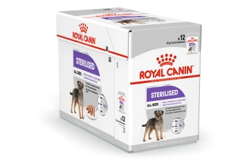 Royal Canin Sterilised Care Loaf Dog är ett välsmakande våtfoder framtaget för kastrerade hundar. Fodret är skräddarsytt med en måttlig fetthalt och innehåller en optimal kombination av kostfibrer för att ge din hund mättnadskänsla och behålla sin idealvikt. Det är mycket rikt på lättsmält protein som hjälper din hund att bevara muskelmassan, samtidigt som fett- och kaloriinnehållet är reducerat. 12x85 g.