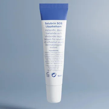 Salubrin SOS läppbalsam används på torra och irriterande läppar och är utvecklad för nordiskt klimat. Kan användas flera gånger dagligen. 15 ml.