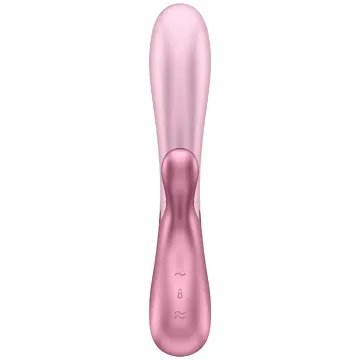 Satisfyer Hot Lover Pink Rabbitvibrator är en sexleksak som stimulerar både klitoris och g-punkten. Vibratorn formar sig smidigt efter kroppen och kan värmas upp till 39 grader för en mer intensiv njutning och ökad chans till orgasm. Har två kraftfulla motorer som kan styras oberoende av varandra via kontrollpanelen eller den kostnadsfria Satisfyer Connect-appen. Vattentät och uppladdningsbar, magnetisk USB-laddare ingår. Tillverkad av 100% kroppssäker och vattentät silikon som kan kombineras med vattenlösliga glidmedel och är lätt att rengöra. För att behålla den silkeslena känslan på silikonet rekommenderas det att undvika silikonbaserade glidmedel.