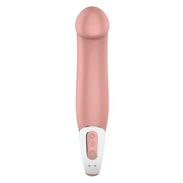 Satisfyer Vibes Master Vibrator har ett naturtroget utseende och en XXL-storlek. Vibratorn skapar både en naturlig och omslutande känsla. Den böjda delen av vibratorn stimulerar g-punkten och ytan är silkeslen. Programmerad med 12 vibrationsmönster jämt fördelade över hela produkten. Denna vibrator passar dig som uppskattar starka vibrationer och XXL. Försedd med ett praktiskt handtag med en integrerad kontrollpanel där vibrationsprogrammen ändras lätt med en knapptryckning. Vattentät och uppladdningsbar. USB-laddare ingår. Mått: 23,5 x 6,5 x 4,6 cm