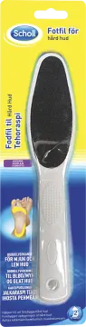 Scholl dubbelverkande fotfil för hård hud. Med en grov yta för att ta bort grov, torr eller hård hud enkelt och säkert samt en fin sida för att jämna till huden och göra den ännu slätare och vackrare.