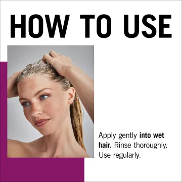 Applicera varsamt i vått hår. Skölj noga! Använd regelbundet.