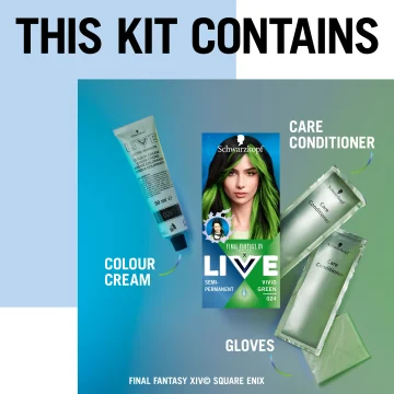 Schwarzkopf LIVE Ultra Brights är en intensiv semipermanent hårfärg med balsam. Du kan uppnå två effekter: förstärkt färgintensitet tack vare inbyggda elektrifierande pigment eller satsa på pastellfärger genom att blanda färgkrämen med balsamet i förpackningen. Hårfärgen håller i upp till 15 tvättar. Silikonfri och alkoholfri. Vegansk. Vivid Green rekommenderas för blekt blont hår. Dusty Rose rekommenderas för blekt till ljusblont hår. Dark Red rekommenderas för mellanblont till ljusbrunt hår. Förpackningen innehåller 1 tub LIVE Ultra Brights Color Creme 50 ml, 2 påsar balsam 15 ml, 1 par handskar, 1 bruksanvisning.