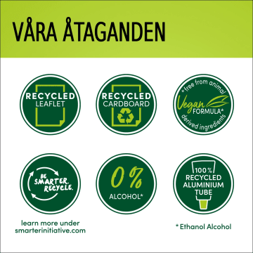Produkten är inte avsedd för användning på personer under 16 år. Temporära tatueringar med svart henna kan öka risken för allergier. Färga inte håret om - du har utslag i ansiktet eller känslig, irriterad och skadad hårbotten, - du har reagerat på hårfärgningsmedel tidigare, - du har reagerat på en temporär tatuering med svart henna tidigare. Innehåller väteperoxid, fenylendiaminer (toluendiaminer). (Notera: Kan också innehålla andra ingredienser. Läs mer på produktens paketbox) Undvik kontakt med ögonen. Skölj genast ögonen om produkten kommer i kontakt med dem. Använd ej till färgning av ögonfransar eller ögonbryn. Skölj håret väl efter användning. Använd lämpliga skyddshandskar. Utför ett varningstest för allergi 48 timmar före varje gång du färgar håret (se bruksanvisningen), även om du har använt hårfärg tidigare. Kom därför ihåg att köpa produkten 48 timmar i förväg. Om du upplever någon reaktion eller om du är tveksam, konsultera alltid en läkare innan du använder ett hårfärgningsmedel. Förvaras oåtkomligt för barn.