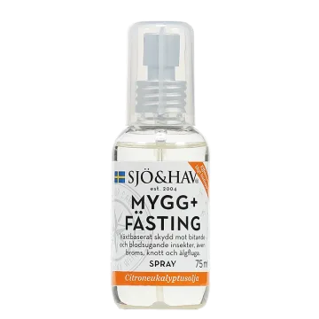 Sjö&Hav Mygg + Fästing Spray är ett myggmedel och fästingmedel i ett. Myggsprayen hjälper till att hålla fästing, mygg, älgfluga, broms och knott på avstånd. Passar perfekt vid sommarkvällar när insekterna gärna tittar fram. Enkel applikator som är lätt att bära med sig. Sprayen är verifierad av Testfakta. 75 ml.