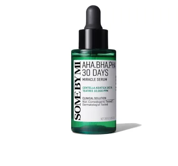 SOME BY MI AHA-BHA-PHA 30 Days Miracle Serum är ett lugnande serum framtaget för en hud med orenheter. Berikat med AHA-syra som avlägsnar döda hudceller, BHA-syra som rengör huden och PHA-syra som håller huden återfuktad och balanserad. Serumet lugnar även en irriterad hud. Fräsch doft. 50 ml.