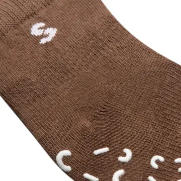 STUCKIES Strumpor i bomull Wood är babystrumpor framtagna för att hålla sig kvar på fötterna oavsett om barnet kryper, försöker dra eller sparka av strumporna. Strumporna är designade med resår runt hålfoten och runt mitten av skaftet vilket minskar risken för att strumpan glider av. Strumporna har även prickar av 100% medicinsk silikon på insidan av skaftet och “sömlös tå” med plan söm för att inte irritera små och känsliga tår. 1-pack. Storleksrekommendation: Följ barnets skostorlek istället för ålder. Små i storlek, välj hellre en större storlek. Storlekar: 10/15 ≈ 0-6 mån (utan anti-slip) 16/18 ≈ 6-12 mån 19/21 ≈ 1-2 år 22/24 ≈ 2-3 år 25/27 ≈ 3-4 år