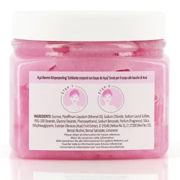 Sunday Rain Body Scrub Acai Berry är en uppfriskande kroppsskrubb som rengör huden och lämnar den mjuk och återfuktad. Exfolierar huden och avlägsnar effektivt döda hudceller med hjälp av naturligt socker. Berikad med extrakt från acaibär som är naturligt rikt på C-vitamin och ger en huden en härlig lyster. 250 g.