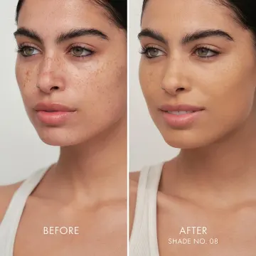 Applicera önskad mängd och använd en foundationborste för att applicera produkten över hela ansiktet eller på specifika områden med nedåtgående rörelser. Bygg upp täckningen tills du når önskat resultat. För ett lättare resultat, applicera produkten med händerna.