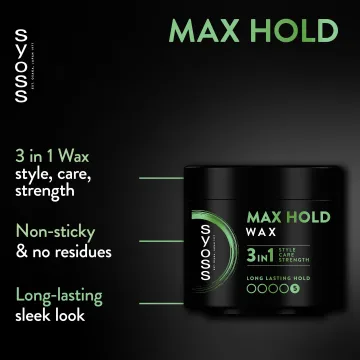 Syoss Max Hold Vax är ett hårstylingsvax som ger intensiv stadga för släta frisyrer. Vaxet har en 3-i-1-formula som hjälper till att styla, vårda och stärka håret. Formulan innehåller ett vitaminkomplex som består av en kombination av pantenol och niacinamid som bidrar till en starkare hårstruktur. Stadgan håller länge utan att lämna klibbiga eller synliga rester. Alkoholfri och silikonfri. 150 ml.