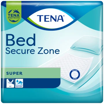 TENA Bed Super 60x60cm är ett extra skydd för sängen med absorberande kärna och vattentät undersida. Innehåller absorbenter som kapslar in vätskan med snabb absorption av fukt och vätska. Mjukt ytmaterial för skön komfort som också är skonsam mot huden. Passar bra som ett extra skydd i säng, soffa eller stol vid inkontinens. Mått: 60x60 cm. 30 st.