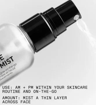 Håll flaskan 20 cm från ansiktet, tryck bestämt på munstycket för att applicera och spraya jämnt över hela ansiktet. Använd på ren, torr hud efter rengöring. Lämplig för användning på språng – applicera på bar hud eller över makeup för att fräscha upp och återfukta.