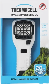 Thermacell MR300 är ett myggskydd i stilren som passar perfekt för balkongen, uteplatsen, terrassen och campingplatsen. Utsöndrar ett luktfritt myggmedel som skapar en skyddszon på ca 20m². Levereras med myggmedelsmattor som ger 12 timmars myggskydd. När myggmedelsmattorna är förbrukade byts de enkelt ut mot nya. Se även Thermacell Refill.