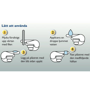 Behandla före sänggåendet och låt verka under natten. Börja med att fukta vårtans yta med ljummet vatten, och applicera plåster med gelen mot vårtan varje kväll före sänggåendet. På morgonen tas plåstret av och slängs.