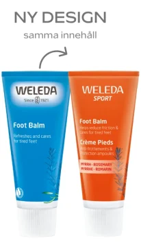 Weleda Foot Balm är en ekologisk, svalkande fotbalsam som vårdar trötta och värkande fötter samtidigt som den gör huden stark och smidig. Innehåller sammandragande myrraextrakt, lugnande ringblomma och ekologisk olivolja som vårdar torra fötter. Krämen innehåller även kaolinlera som hjälper till att motverka fukt och dålig lukt. Naturligt parfymerad. 75 ml.